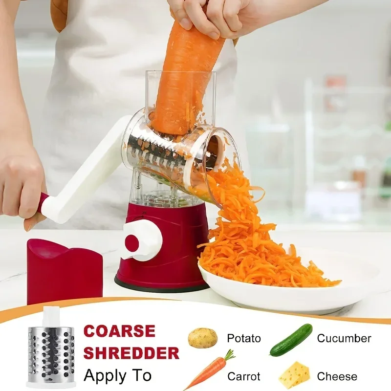 The 3in1 Vegetable Slicer is a versatile kitchen tool designed for efficiency and precision. Featuring three sharp rotary rollers, it effortlessly slices, shreds, and grates vegetables and cheese, streamlining meal preparation. Its handheld design ensures comfortable use and easy control, making it ideal for both professional chefs and home cooks seeking reliable multifunctionality in one compact device. Durable and easy to clean, this slicer enhances kitchen productivity while maintaining consistent results.