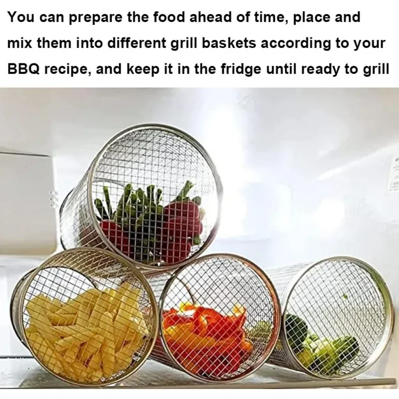 Get Food Ready in Advance: The rolling grill basket is not only convenient for grilling but also for storing food. You can prepare the food ahead of time, place and mix them into different grill baskets according to your BBQ recipe, and keep it in the fridge until ready to grill, perfect for picnics, parties, or camping trips.
