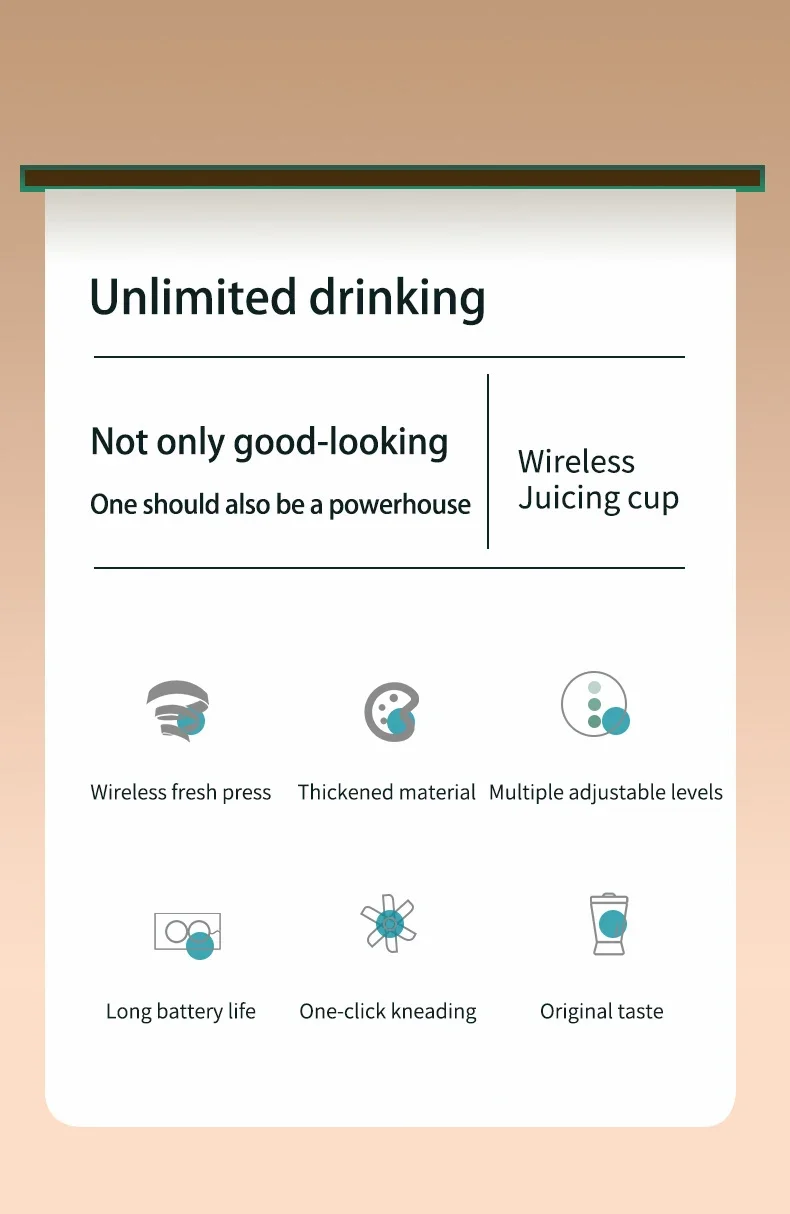 Main Features of the cordless portable electric fruit vegetable juicer:
