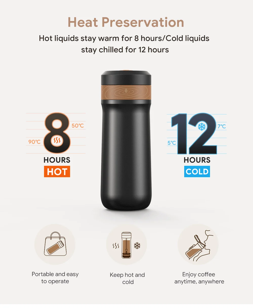 Experience the convenience of freshly brewed coffee anywhere with this Portable Stainless Steel Insulated Coffee Press. Designed for travel and outdoor use, it combines a French press and tea maker in one durable, insulated mug. Its stainless steel construction ensures heat retention and long-lasting performance, while the compact design fits easily in your car or backpack. Ideal for coffee enthusiasts on the go, this versatile coffee pot delivers rich flavor and temperature control wherever your adventures take you.