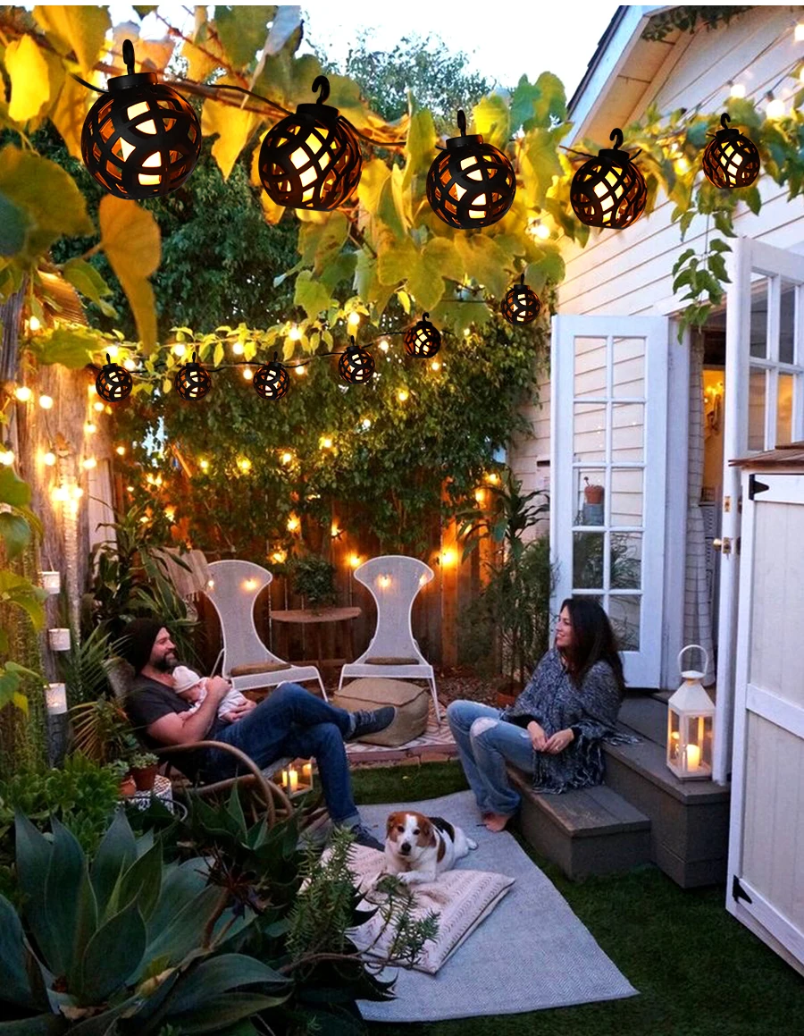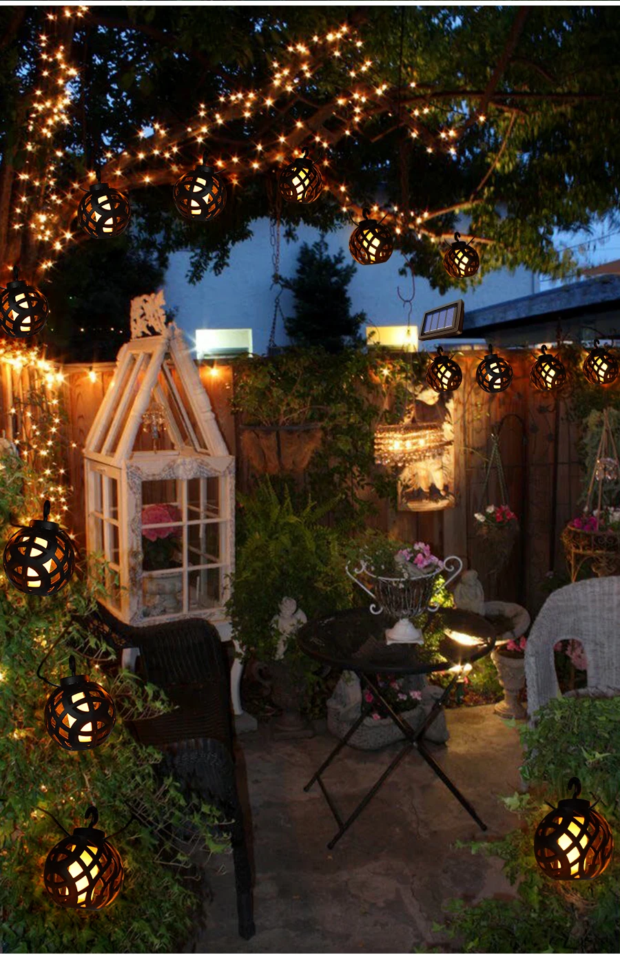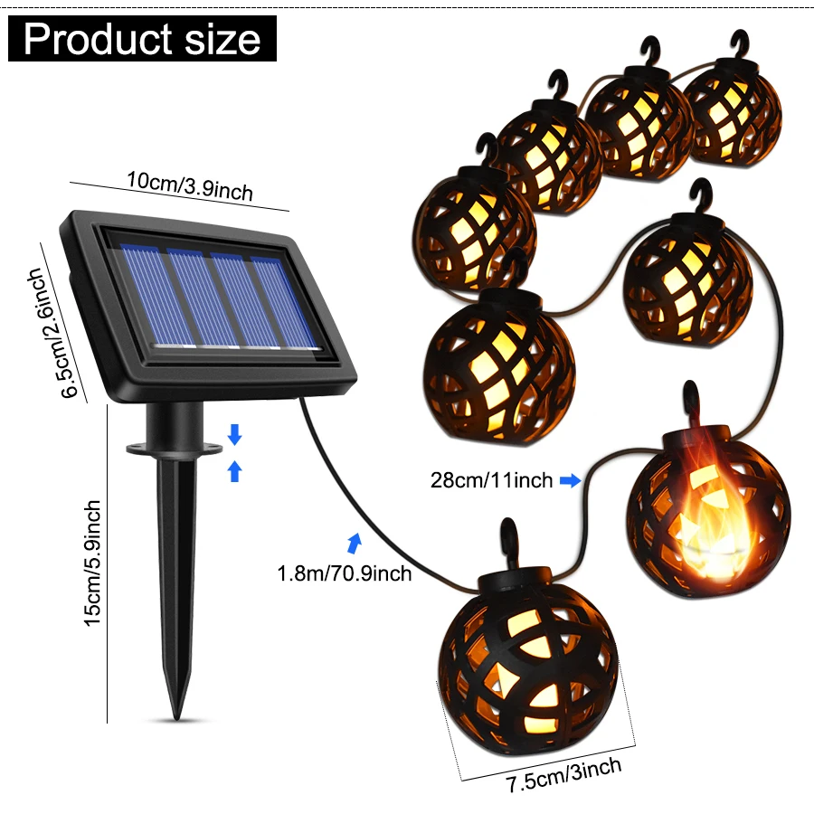 Solar String Lights LED Outdoor Waterproof Flickering Flame Hanging Solar Lantern Lamp with 8 Ball for Patio Garden Yard