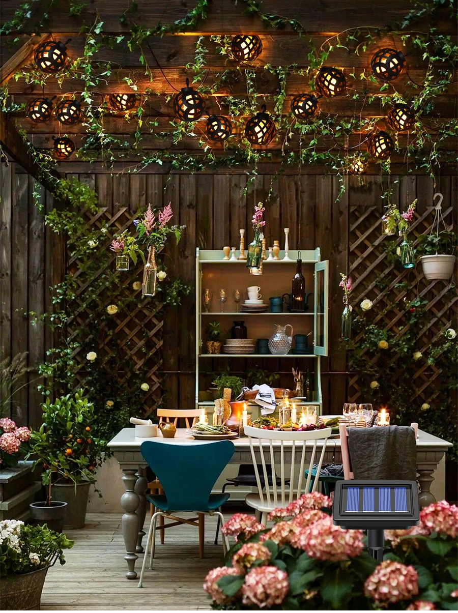 4.【Multi-Occasion】-- Solar lights outdoor decorative can be hung on garden, yard, porches, trees, pergola with the handle, or place on desk or ground