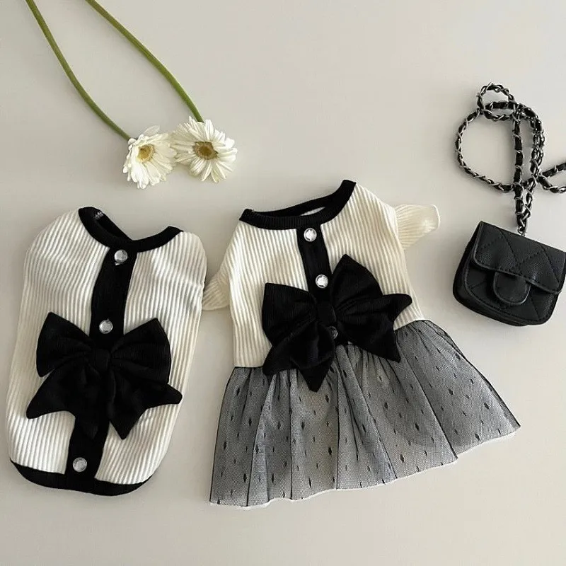 This luxury summer dress is designed specifically for small dogs, combining comfort and style. Featuring delicate lace and a charming bow, it offers a sophisticated look while keeping your puppy cool. The black and white color scheme adds timeless elegance, making it perfect for special occasions or everyday wear. Crafted to fit breeds like Chihuahuas, this dog skirt and T-shirt vest blend fashion with practicality for your beloved pet.