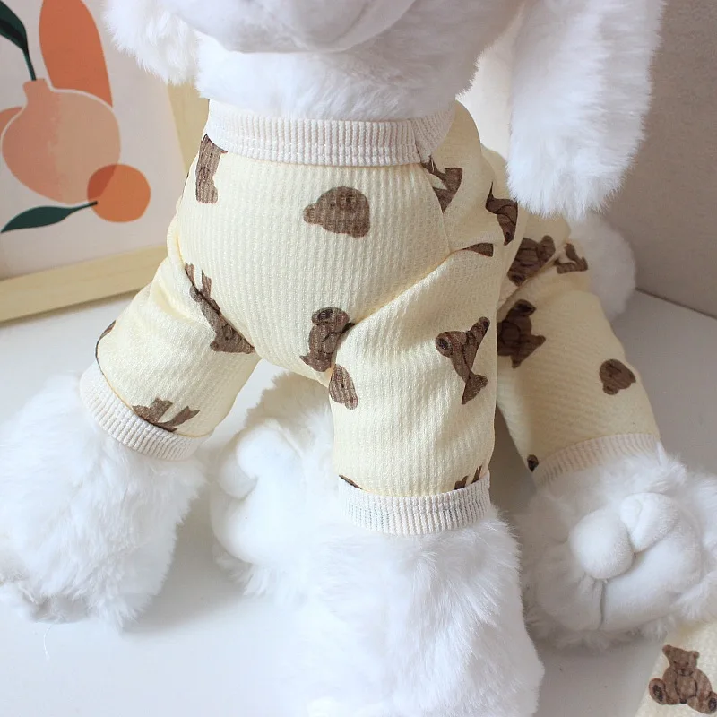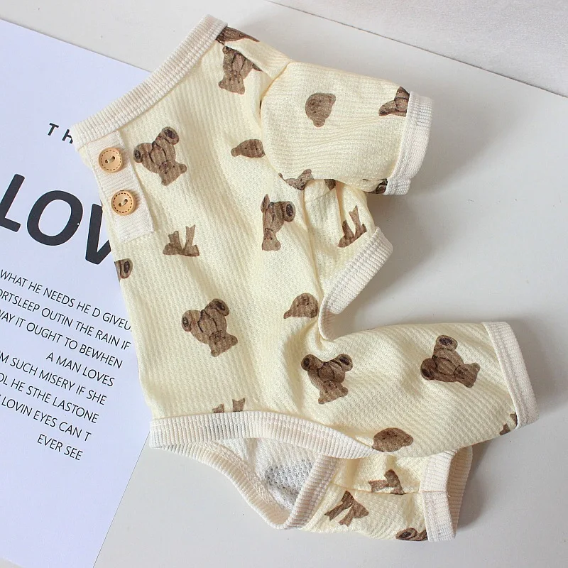 This pet dog jumpsuit is designed for comfort and breathability, ideal for spring and summer wear. Featuring a cute bear vest style, it suits small breeds like Teddy and French Bulldogs. The lightweight fabric ensures your puppy stays cool while enjoying unrestricted movement, making it perfect for daily outings or lounging at home. Durable and easy to put on, this jumpsuit combines style with practicality for your beloved pet.