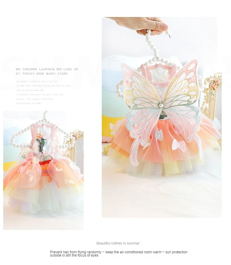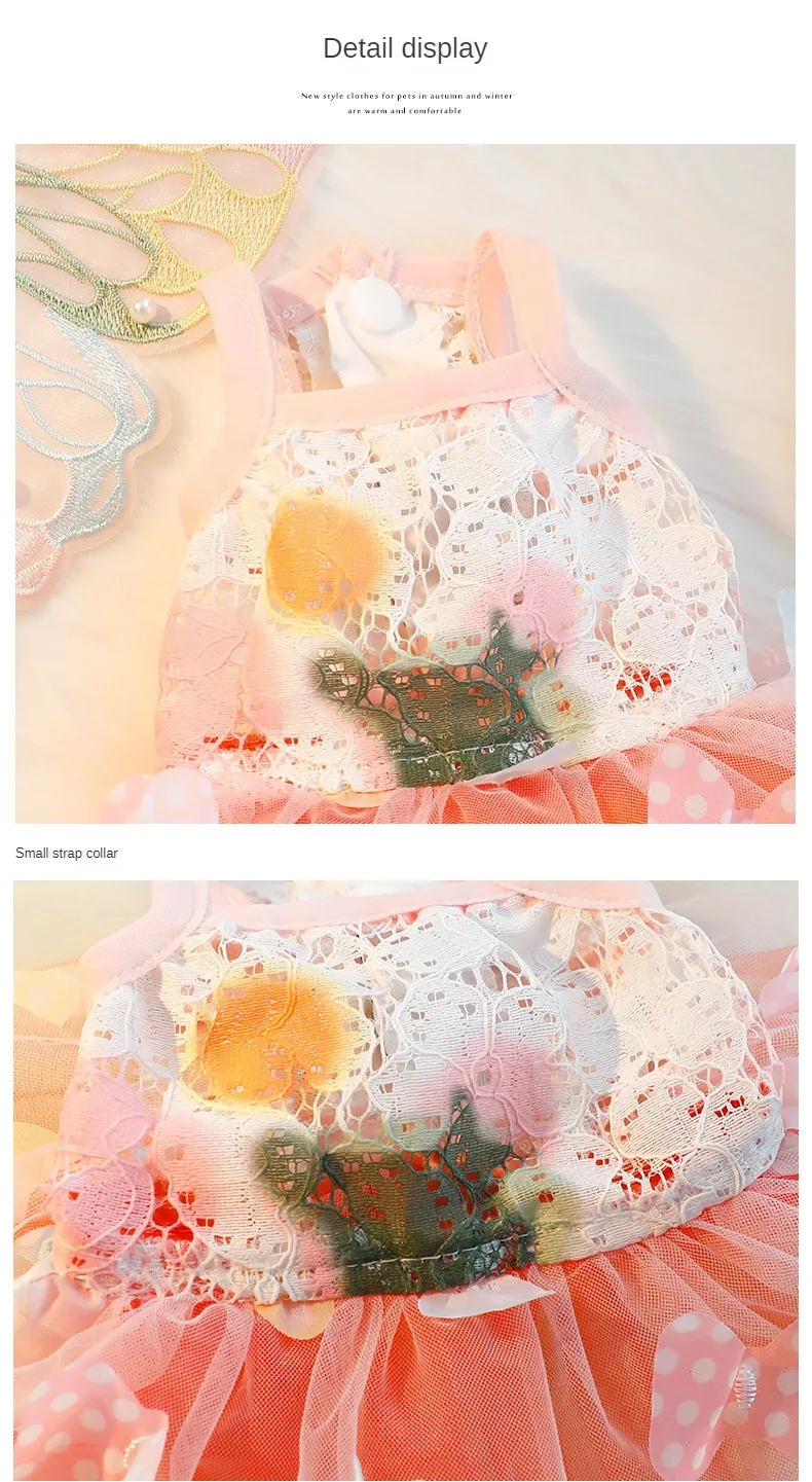 This Summer Pet Princess Dress is designed for small dogs and cats, including Yorkshires, Chihuahuas, and Poodles. Crafted for comfort and style, it features a lightweight skirt perfect for warm weather and special occasions like weddings. The breathable fabric ensures your pet stays cool while looking elegant, making it an ideal choice for summer outings and celebrations.